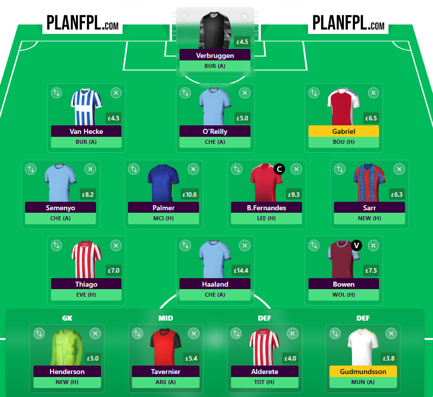 As for the defensive trio we’ve gone for, Bart Verbruggen (£4.5m) is an ever-present starter, Jan Paul van Hecke (£4.5m) has started every match he’s been available for, and Ferdi Kadioglu (£4.4m) is on a 27-match run in Fabian Hurzeler’s XI. Van Hecke is the jewel in the crown: DefCon points in four of his last five, and with a bit of attacking threat. Kadioglu offers not much of either, but Lewis Dunk (£4.5m) is a no-go due to a two-match suspension.