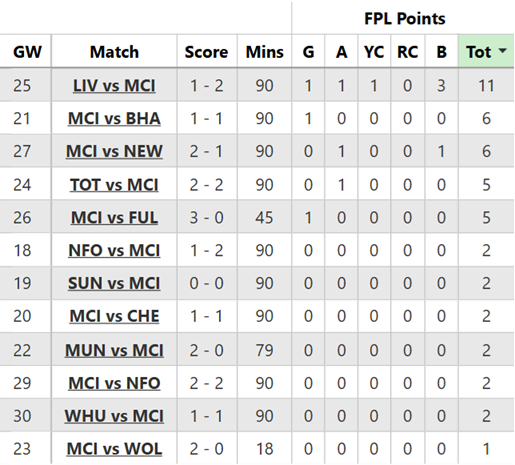 This allowed fellow FPL premium Haaland to take over, bagging his 12th hat-trick for the Citizens.