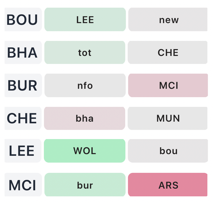 Gameweek 32 fixtures, sorted by difficulty on our Season Ticker