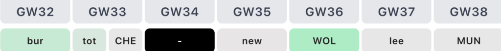 The matchups admittedly don’t scream points, but it is, after all, part of a much bigger plan (which could include Triple Captain 36 if you still have it left), and probably shouldn’t be focused on in isolation.