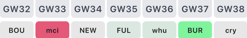 They follow it up with a Double Gameweek 33, and remember, City will have another ‘double’ beyond that one, likely in Gameweek 36.