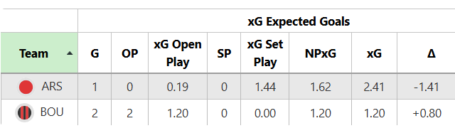 The Opta xG said 2.41-1.20 in Arsenal’s favour, which suggests they were unlucky to lose. Perhaps that’s true, to an extent.
