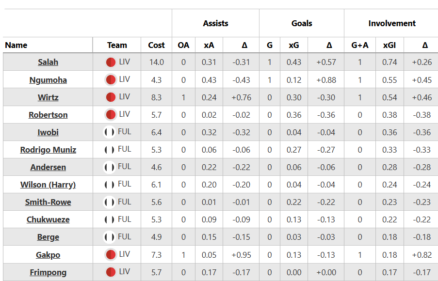 Perhaps the freshening up of the attack helped. Slot changed four of his front six, bringing in Rio Ngumoha (£4.3m), Mohamed Salah (£14.0m), Curtis Jones (£5.4m) and Cody Gakpo (£7.3m).