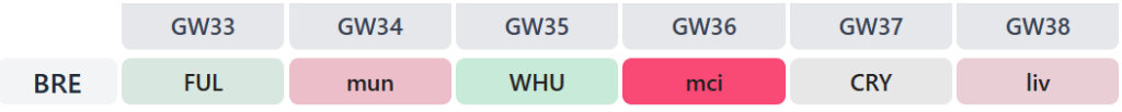 Gameweek 34 against West Ham (especially for those Free Hitting) might be a different kettle of fish, however. And look at this run-in, starting with a trip to Selhurst Park, which will likely come less than 72 hours after Crystal Palace contest a UEFA Conference League semi-final: