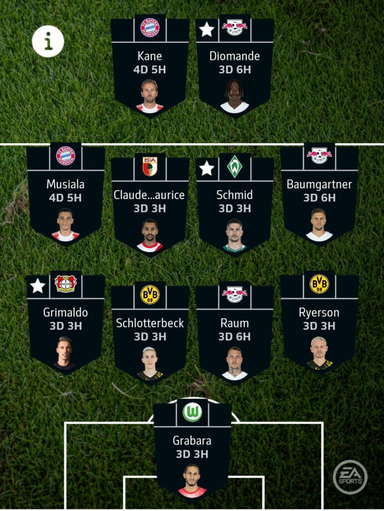 - Yan Diomande gets the star as he looks nailed. Jamal Musiala has the star for now as well, assuming his chances of starting remain strong. Alejandro Grimaldo has a great fixture, so the star there feels obvious.