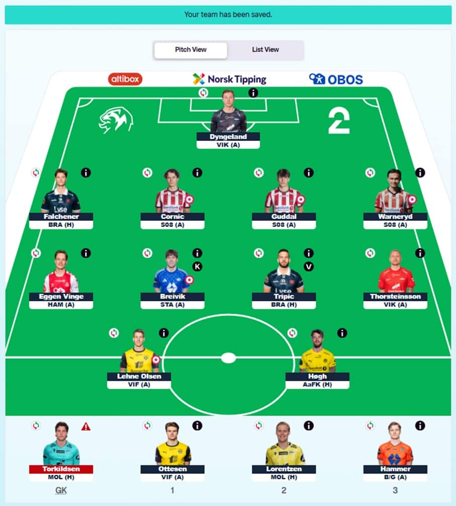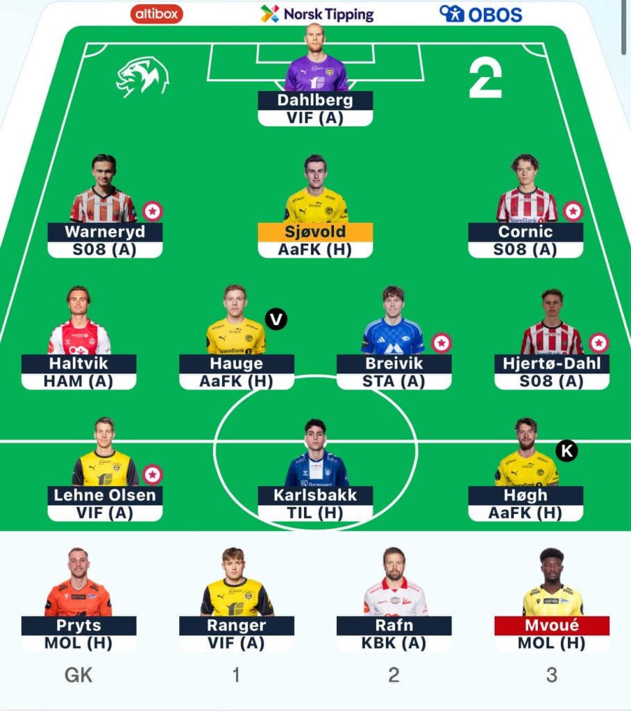 - Captaincy goes straight to Breivik, with Molde facing bottom-of-the-table Start. It feels very difficult to go without Molde assets this week.