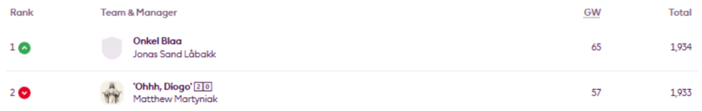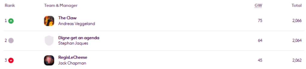 Andreas Veggeland is the new leader of our Fantasy Football Scout mini-league (code ql9e6k) and is now 39th worldwide. He’s had two top 10k finishes.