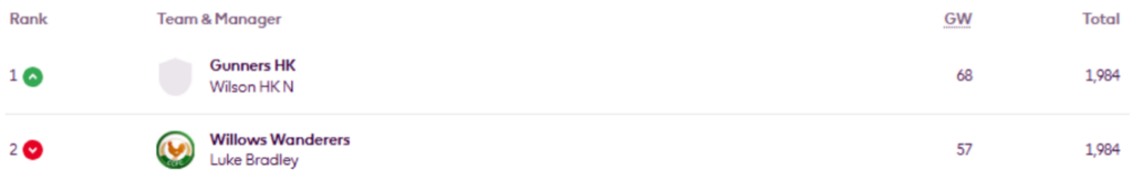MIR’s FFS Head-to-Head Leagues were updated on Wednesday evening, showing the results from Gameweeks 31 and 32.