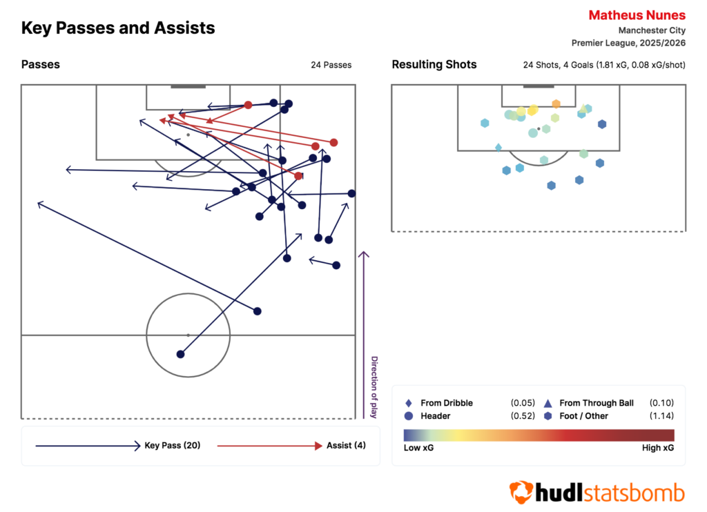 With Nico O’Reilly (£5.0m, 47.7% ownership in the top 100k) and Marc Guehi (£5.1m, 16.4% ownership in the top 100k) both more highly-owned than Nunes, the right-back offers plenty of upside as a differential for those Fantasy managers in need of a late-season push.