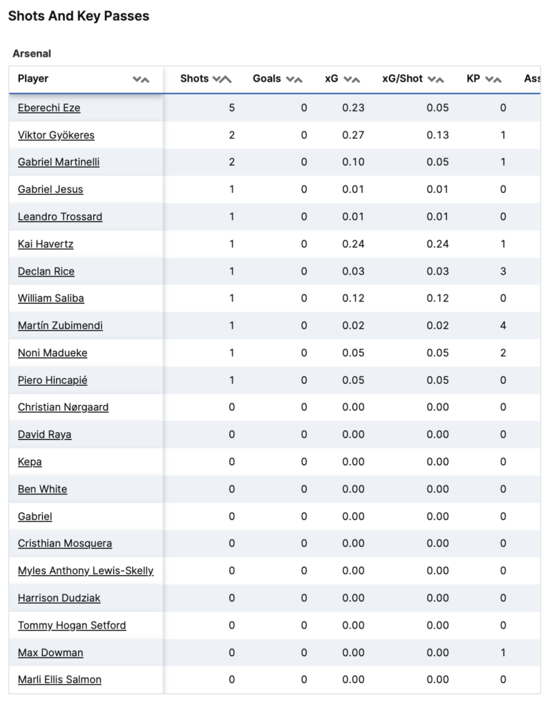 It was another game of low xG, an all-too-familiar outcome with the Gunners. Another good advert for Arsenal’s defensive assets, another flunked audition from the attackers.