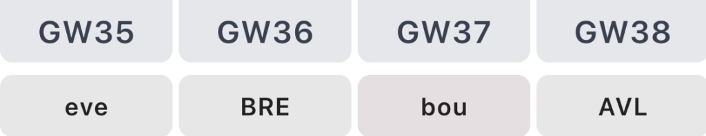 - Sun 19 April: Double Gameweek 33 – Arsenal (h), 4:30pm BST