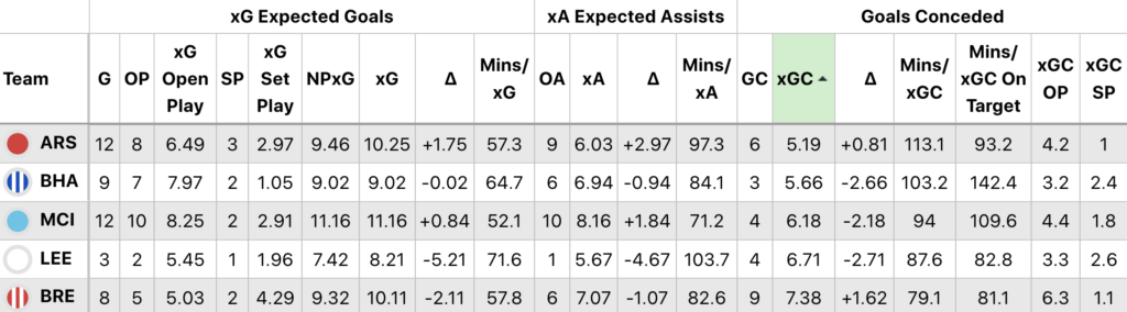 Indeed, an xGC of 6.18 in that same period is the division’s third-best: