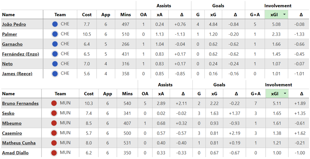 Over their last six Gameweeks, these are both sides’ best players for expected goal involvement (xGI):