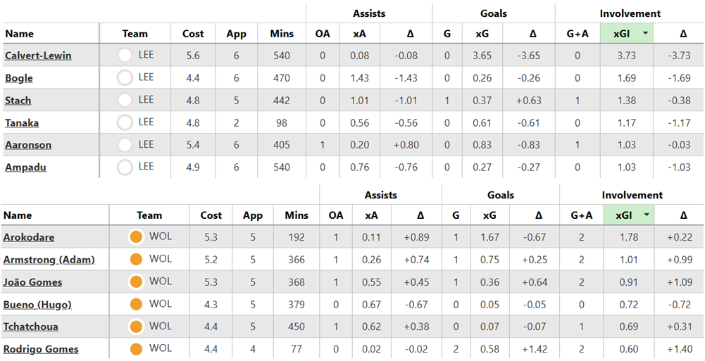 Over their last six Gameweeks, these are both sides’ best players for expected goal involvement (xGI):