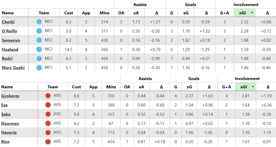 Over their last six Gameweeks, these are both sides’ best players for expected goal involvement (xGI):