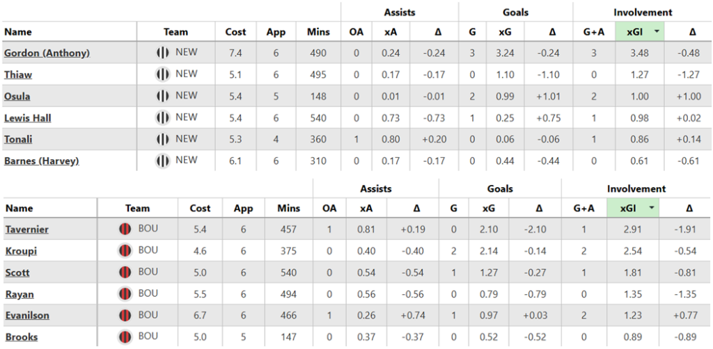 Over their last six Gameweeks, these are both sides’ best players for expected goal involvement (xGI):