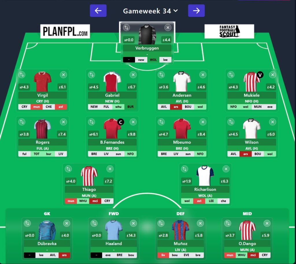 Instead, let me share my current team for Gameweek 34:
