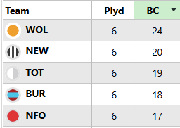 Indeed, their xGC has taken a real turn for the worse lately, with only Wolves allowing more ‘big chances’ (BC) in the last six matches: