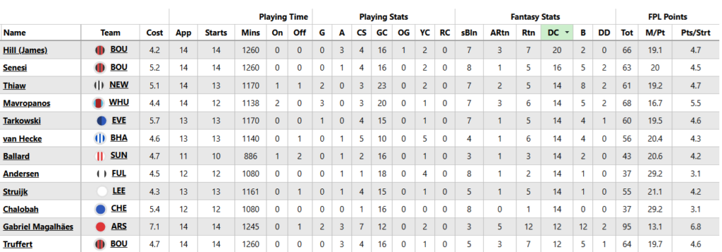 Since their successful centre-half partnership began back in Gameweek 19, they’re ranked first and second among defenders for DefCon (DC) points: