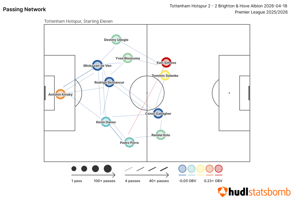 But central to the improved display was Xavi Simons (£6.5m). Starting nominally on the left but drifting infield, he was at the heart of most of Spurs’ attacking play.