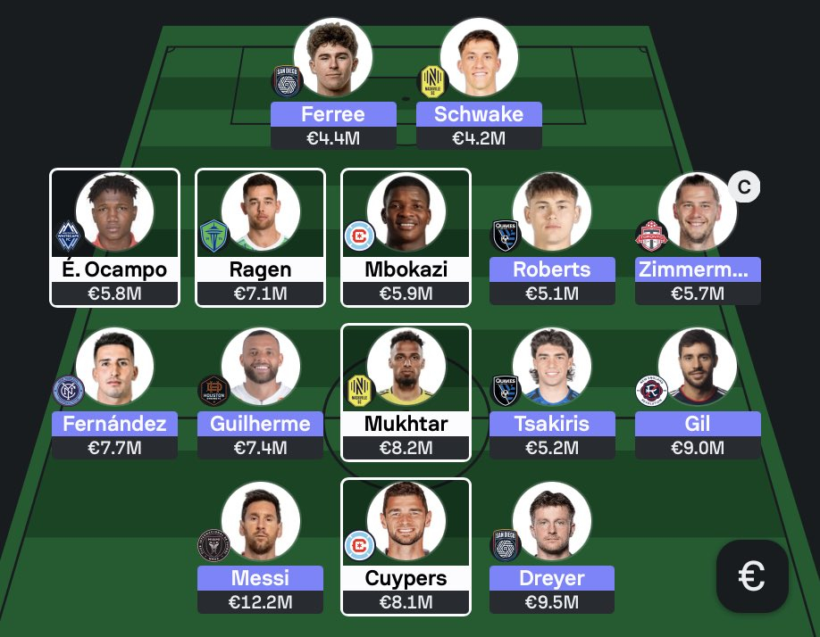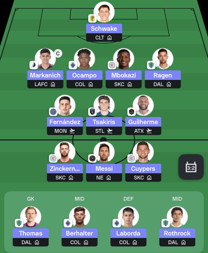 - No changes in midfield this week. I’m happy with what I’ve got. Rodrigo De Paul continues to anchor things from an Inter Miami perspective, while Niko Tsakiris is enjoying a strong season with consistent returns for San Jose. Nick Fernandez is emerging as an early MVP contender. Alongside them, Sebastian Berhalter and Guilherme round out a midfield that looks well set.