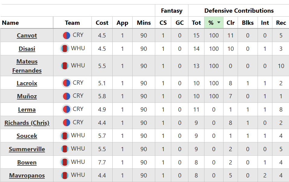 Mavropanos again just fell short of DefCon points. Axel Disasi (£4.5m), a revelation since he signed, bagged them for the very first time.