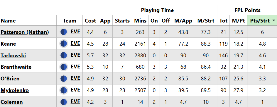 And in terms of DefCon, Keane is nearly up there with Tarkowski. The former has banked DefCon in 54.2% of his starts, with Tarkowski up at 59.4%.