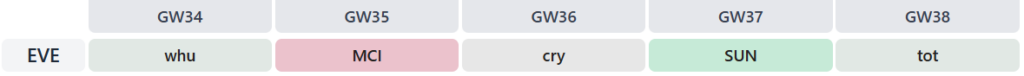Other than the Gameweek 35 clash with Manchester City, it’s a pretty good run-in for the Toffees. Indeed, the schedule above is enough for them to rank third on our Season Ticker.