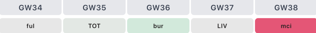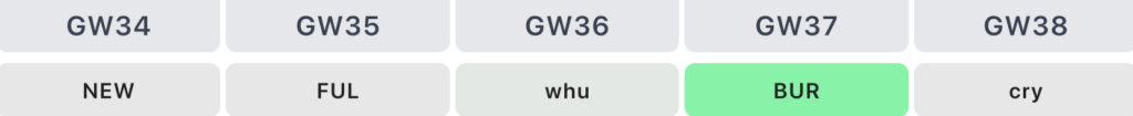 - Sunday 10 May: Gameweek 36 – Burnley (a)