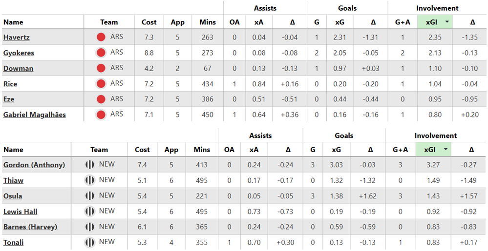 Over their last six Gameweeks, these are both sides’ best players for expected goal involvement (xGI):