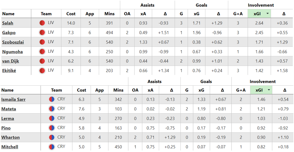 Over their last six Gameweeks, these are both sides’ best players for expected goal involvement (xGI):