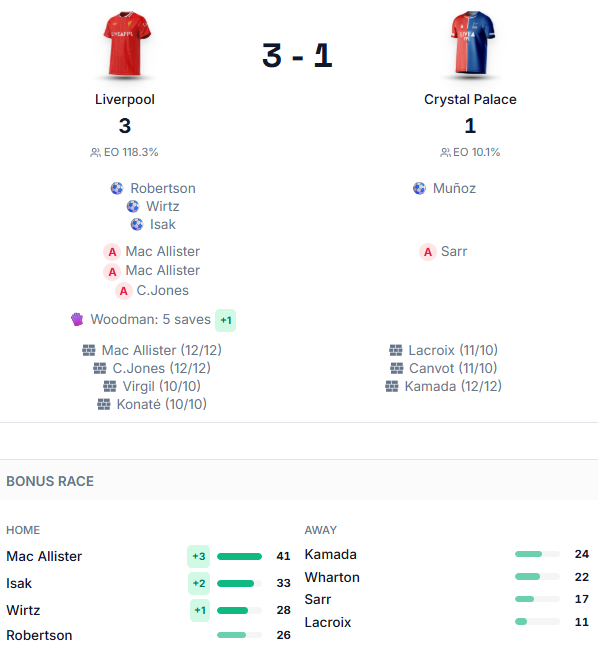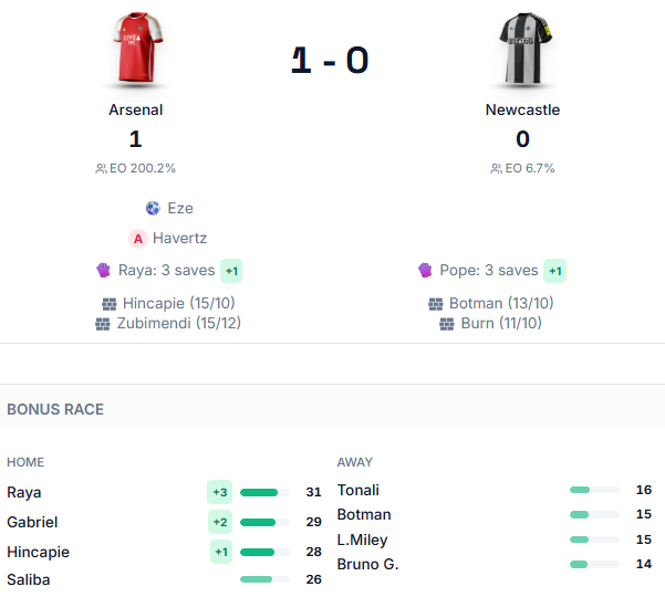 The goals, assists, bonus and defensive contribution (DC/DefCon) points summaries are from LiveFPL.