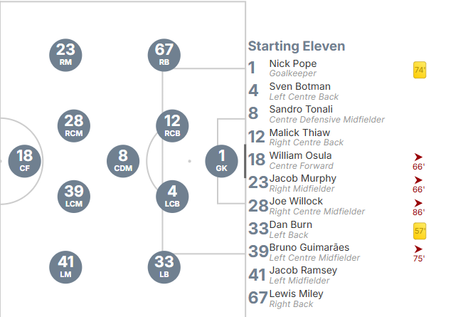 “And then the other side of that is I thought it was a better performance with the ball, as well, with Bruno’s return. We were more controlled in our build. I thought we were brave with the ball and we created chances to score as well. So, performance-wise, I’m much more satisfied with that.” – Eddie Howe
