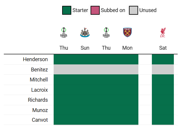 Again, a third Palace asset could easily be added (eg Chris Richards (£4.4m) in place of Jan Paul van Hecke (£4.6m)), if desired.