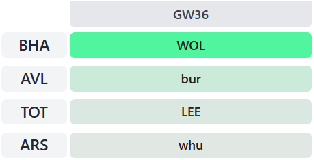 Brighton and Aston Villa stand out, so we’ve added some assets from these two clubs with a Gameweek 36 Bench Boost in mind.