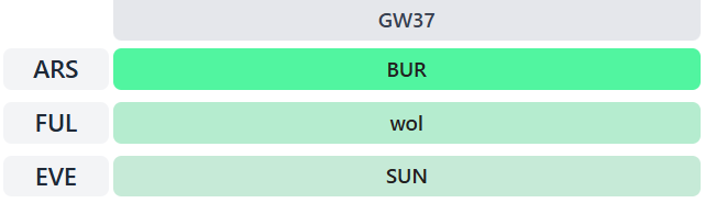 The good thing is that Everton and Fulham also have decent Gameweek 38 fixtures, against Spurs and Newcastle respectively. The hope is that they’ve still got something to play for by that point.