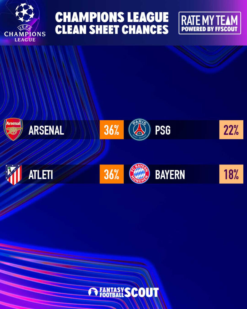 Two sides sit joint-top for clean sheet odds this week, and they face each other. The team with the stronger defensive record, though, is Arsenal, who kept back-to-back clean sheets in the previous Champions League round.