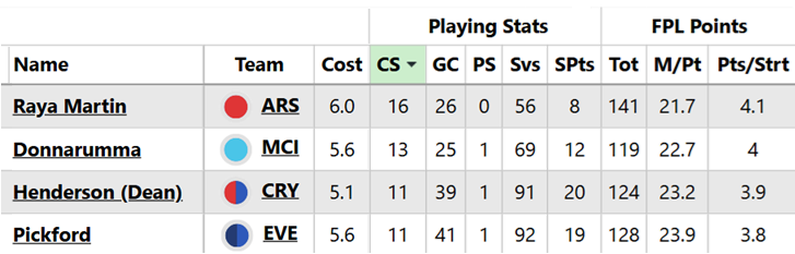 David Raya is three ahead of Gianluigi Donnarumma (£5.6m), aiming to win it for a third consecutive campaign. The Spaniard shared this honour with Matz Sels (£4.6m) last time.