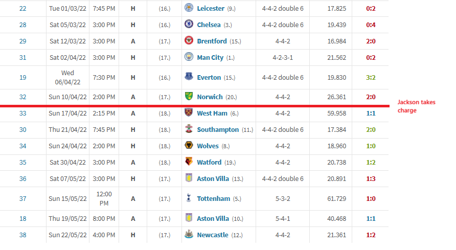 Jackson followed on from Sean Dyche and stuck to the tried-and-tested gameplan, rolling out a 4-4-2 for his first five matches in charge.