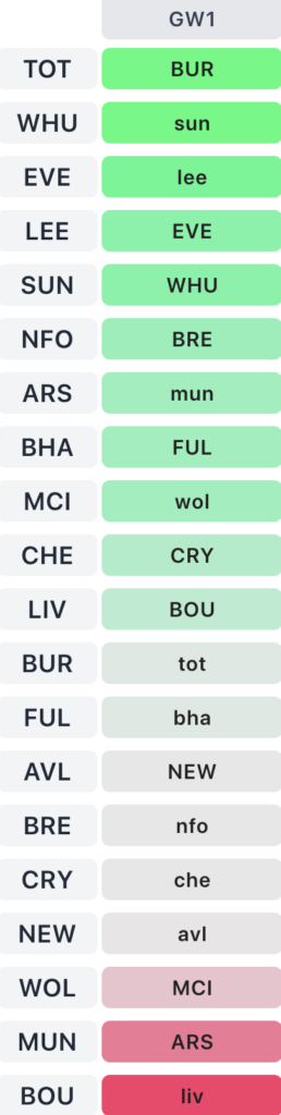 Above: The Gameweek 1 fixtures sorted by difficulty on our Season Ticker.