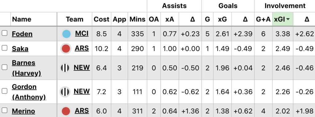 That said, it’s still hard to look past the in-form England international, who has outperformed every other FPL midfielder for expected goal involvement (xGI) over the last four Gameweeks: